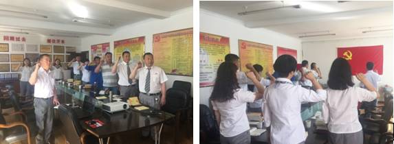 2016年6月30日,青海物產(chǎn)汽貿(mào)公司黨支部組織全體黨員慶"七一"上黨課。黨課開始之前,全體黨員面向黨旗重溫了《入黨誓詞》。"我志愿加入中國共產(chǎn)黨,擁護(hù)黨的綱領(lǐng),遵守黨的章程,履行黨員義務(wù),執(zhí)行黨的決定,嚴(yán)守黨的紀(jì)律,保守黨的秘密,對黨忠誠,積極工作,為共產(chǎn)主義奮斗終身,隨時準(zhǔn)備為黨和人民犧牲一切!永不叛黨"。