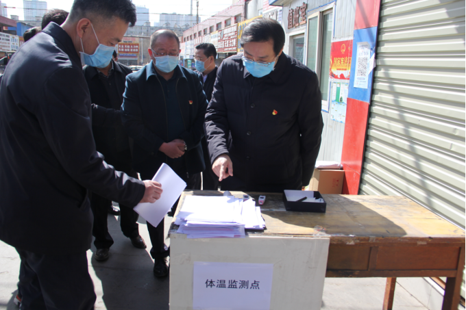 市委書記王曉一行在接受體溫測(cè)量與車輛消毒后,進(jìn)入汽配市場(chǎng)。在檢查中,向三建公司負(fù)責(zé)人詳細(xì)詢問(wèn)疫情防控工作、復(fù)工復(fù)業(yè)情況和生產(chǎn)經(jīng)營(yíng)存在的困難,公司負(fù)責(zé)人就疫情防控工作進(jìn)展與復(fù)工復(fù)業(yè)情況進(jìn)行了匯報(bào)。疫情發(fā)生后,公司黨支部認(rèn)真貫徹落實(shí)習(xí)近平總書記關(guān)于堅(jiān)決打贏疫情防控人民戰(zhàn)爭(zhēng)、總體戰(zhàn)、阻擊戰(zhàn)的重要講話,重要指示批示精神,在省委省政府、省國(guó)資委黨委及集團(tuán)公司黨委的領(lǐng)導(dǎo)下,嚴(yán)格落實(shí)疫情防控責(zé)任,健全完善了疫情防控體系,一是第一時(shí)間成立新型冠狀病毒感染的肺炎防控工作領(lǐng)導(dǎo)小組,制定《新型冠狀病毒預(yù)防及應(yīng)對(duì)應(yīng)急預(yù)案》,相關(guān)職能部門工作人員第一時(shí)間執(zhí)行落實(shí),第一時(shí)間聯(lián)系采購(gòu)疫情防控物資,輿論宣傳第一時(shí)間正面發(fā)聲;疫情緩解后,第一時(shí)間向相關(guān)部門提交了開業(yè)申請(qǐng),待批復(fù)下發(fā)后,在做好開業(yè)準(zhǔn)備的同時(shí),做好商戶房租減免工作;二是繼續(xù)鞏固深化"不忘初心、牢記使命"主題教育成果,牢固樹立"生命重于泰山、疫情就是命令、防控就是責(zé)任"思想,堅(jiān)定信心,提高政治站位,實(shí)現(xiàn)抗疫阻擊戰(zhàn)的勝利和經(jīng)濟(jì)社會(huì)發(fā)展目標(biāo)"雙勝利"。三是嚴(yán)格做好"防輸入、防擴(kuò)散、防輸出"工作,將市場(chǎng)3個(gè)入口改為目前的1個(gè)入口,并增派工作人員及保安為進(jìn)入市場(chǎng)人員測(cè)體溫、消毒及人員實(shí)名登記后進(jìn)入,對(duì)市場(chǎng)勸返點(diǎn)、辦公區(qū)域、公共區(qū)域等重要關(guān)卡、重點(diǎn)崗位、重點(diǎn)人員進(jìn)行跟蹤監(jiān)測(cè)管理,落實(shí)商戶疫情防控責(zé)任,并簽訂目標(biāo)承諾,確保做好疫情防控工作前提下,有序推進(jìn)商戶復(fù)工復(fù)業(yè)。