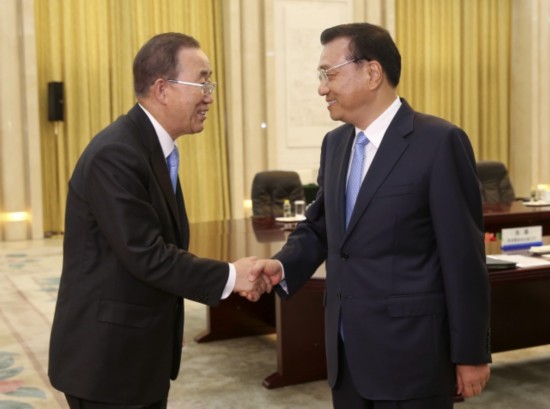 李克強總理會見聯(lián)合國秘書長潘基文時說:"人類面臨的最大挑戰(zhàn),是在處理'減貧'和'應(yīng)對氣候變化'兩個問題的過程中,取得一個平衡點。"